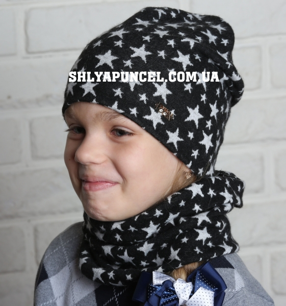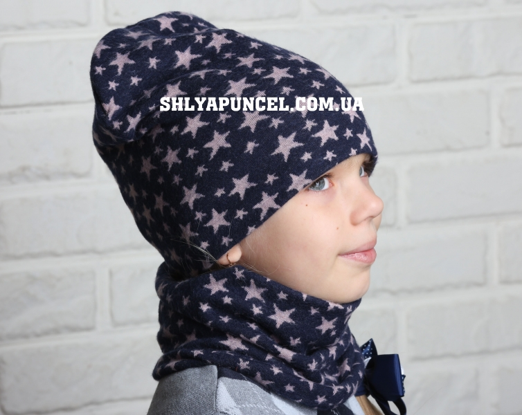 Трикотажный комплект для девочки, состоящий из мягкой шапочки на флисе и снуда,