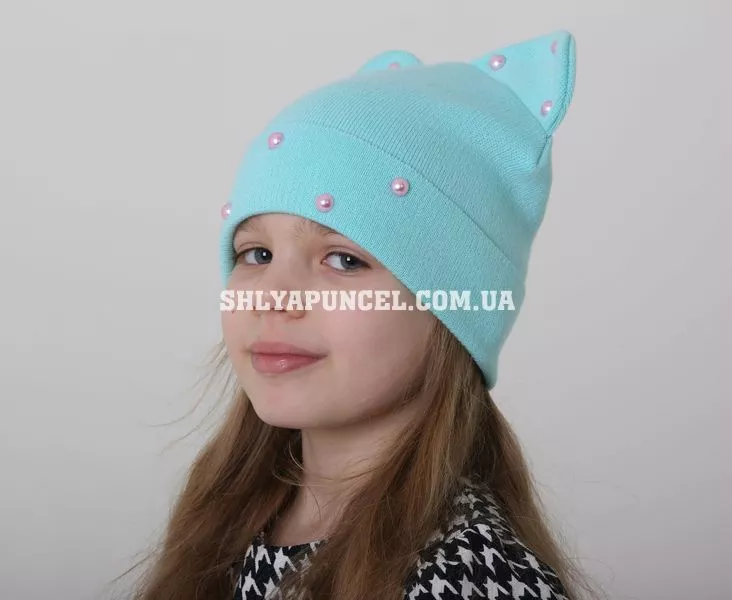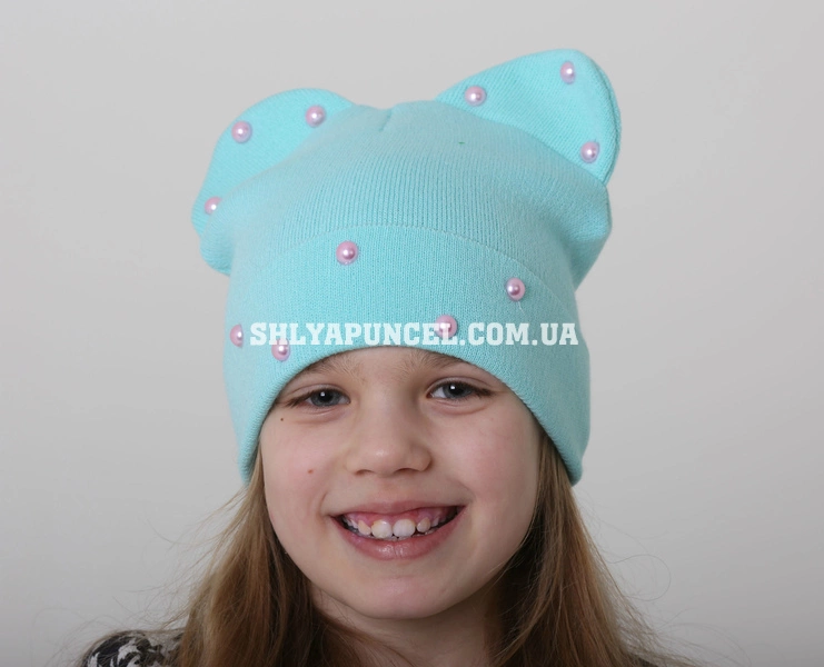Аригинальная детская шапочка, украшенная, жемчугом.