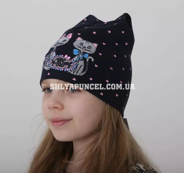 Трикотажная шапочка для девочки "Мяw"