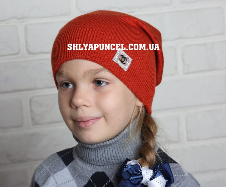 Вязаная шапочка для девочки на флисе, размер 50-54,состав: акрил