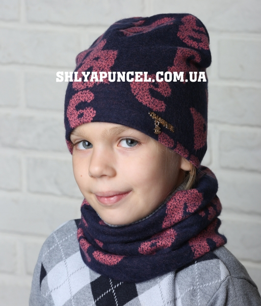 Утепленный на флисе комплект для девочки, состоящий из шапочки на флисе и снуда,