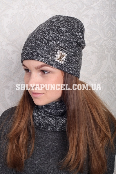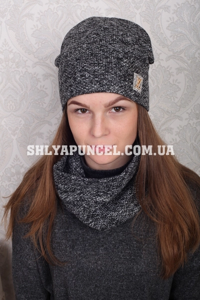 Стильный молодежный комплект, состоящий из шапочки  на флисе и хомутика, размер 54-56, цвет: светлосерый, темно-серый, синий.
